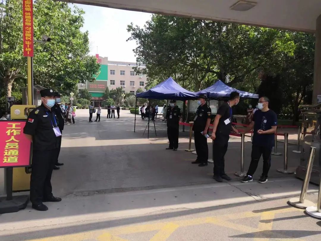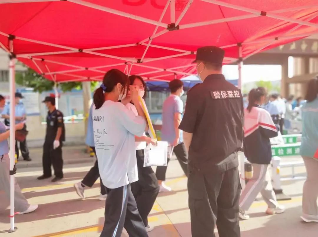 期間,各考點安保負責人趙洪臣、孫輝國、邱洪冰、賈義軍、候佃榮等主管領導及執勤隊員一早提前到達崗位,配合現場工作人員做好證件查驗,嚴禁無關人員混入考場,同時防止人員擁堵、讓考生安全。并積較協助公安機關通過定點執勤和動態巡邏相結合的方式,對轄區內各考點及周邊開展巡邏,引導學生有序入場,維護考場周邊秩序,讓考生進場安全暢通。