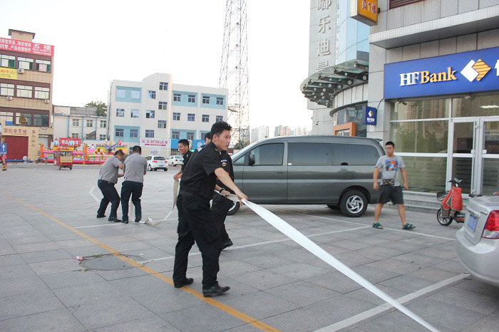 7月27日上午8時30分,人防一大隊接客戶單位天衢路中國銀行求助電話后,立即通知大隊應急搶險分隊30名保安隊員在第一時間趕赴現場。大隊長王新剛,一中隊、三中隊中隊長李明、孫輝國在下達集結指令的同時也快速抵達。