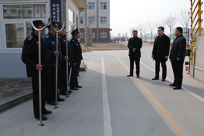2月28日上午,德州市恒威安保服務有限公司慶云分公司總經理李建德、大隊長李雙陪同德州市慶云縣教育局安全科孫科長、楊科長視察指導我公司承擔的高校、中小幼校園安保工作。